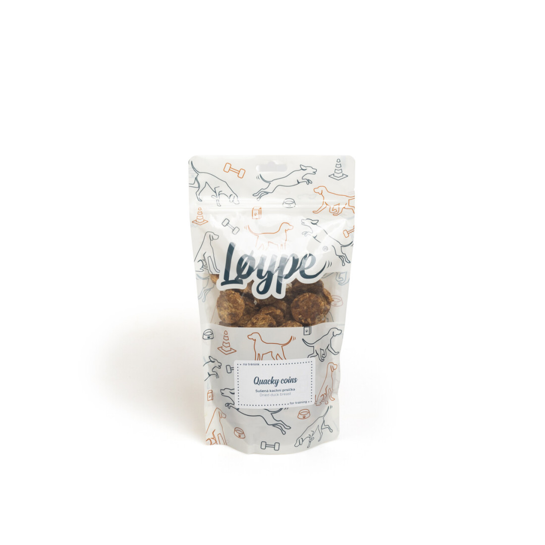 Když chceme psovi dopřát něco fakt dobrého, sáhneme po kachních žetoncích. Voňavé, masité a přesně tak velké, aby je stihl slupnout ještě dřív, než se řekne “sedni”. Quacky coins jsou vyrobeny z kachních prsíček sušených horkým vzduchem. Nic víc v nich nenajdete – žádná barviva, žádné vůně, žádné výplně. Prostě čisté, kvalitní maso, které psovi dodá pořádnou dávku proteinu a přitom ho zbytečně nezatíží tukem. Kachní maso je přirozeně chutné a dobře stravitelné, takže většina psů se po něm může utlouct. A protože jsou žetonky lisované do praktické velikosti jednoho sousta, jsou ideální na rychlé odměňování nebo jako chvíle radosti během dne.